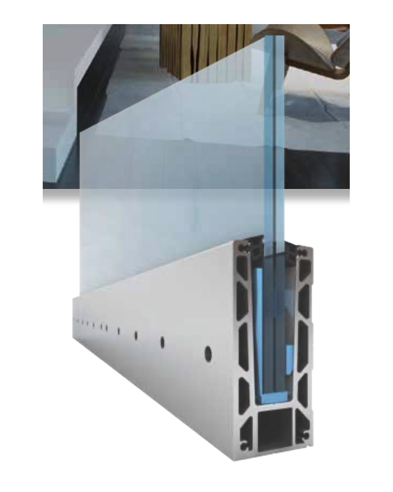 Le profil de sol est réalisé dans un alliage d'aluminium de qualité répondant à la norme EN AW 6063. Après fabrication, des tests de résistance mécanique sont effectués comme le déplacement maximum toléré sous une charge horizontale de 240 kg appliquée sur la partie haute du profil. Le garde-corps en verre KF 1150 offre des performances solides correspondant aux normes en vigueur.