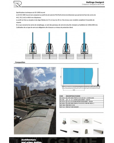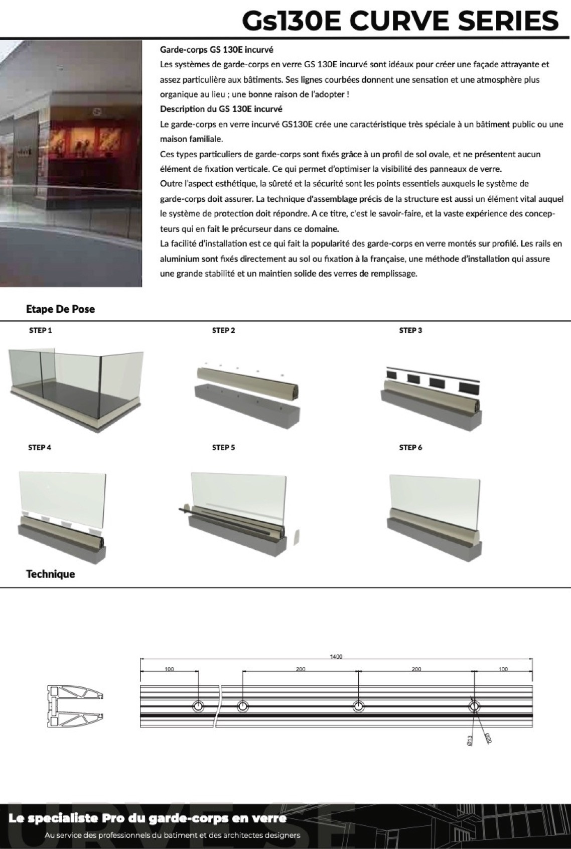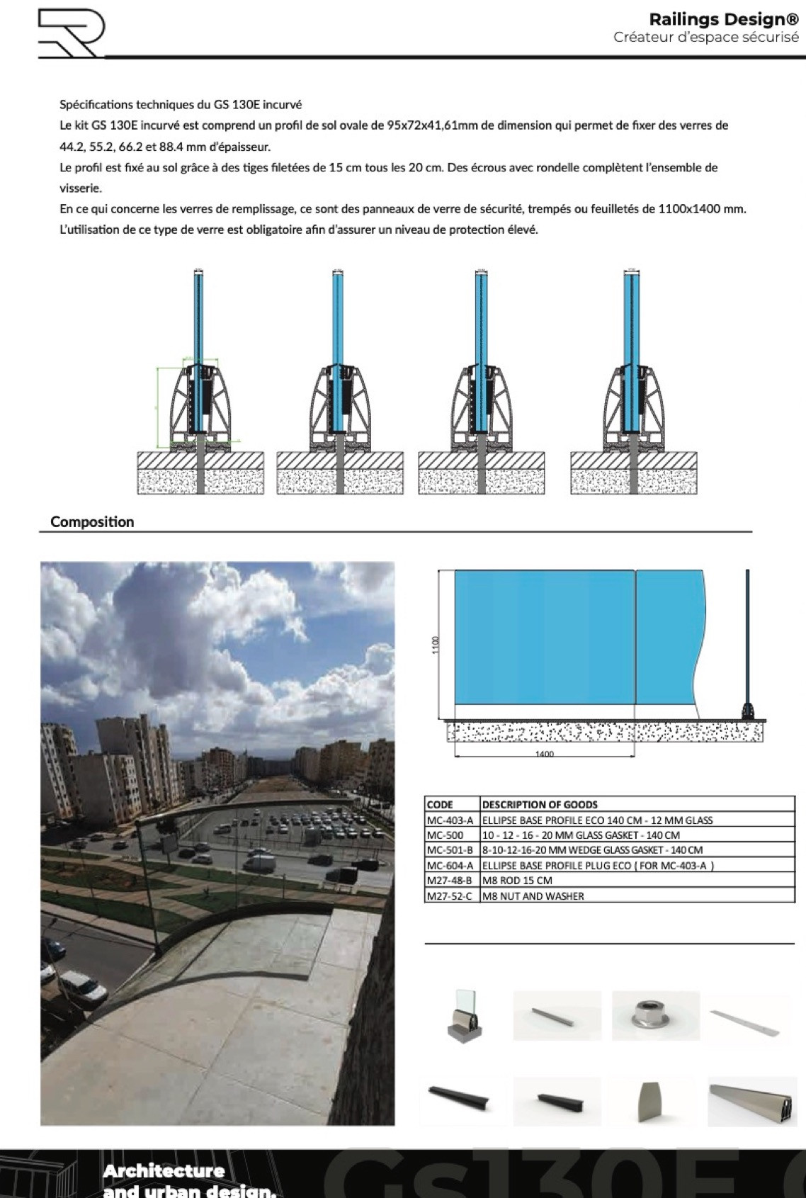 Do you dream of a glass railing that combines elegance, safety and originality, without sacrificing your budget? The GS130E Incurvé is the ideal solution. Its rounded shape adds a soft, modern touch to your space, while preserving the luminosity and unobstructed view that only glass can offer. Embellish your property with style and economy, and let light and softness into your everyday life.
