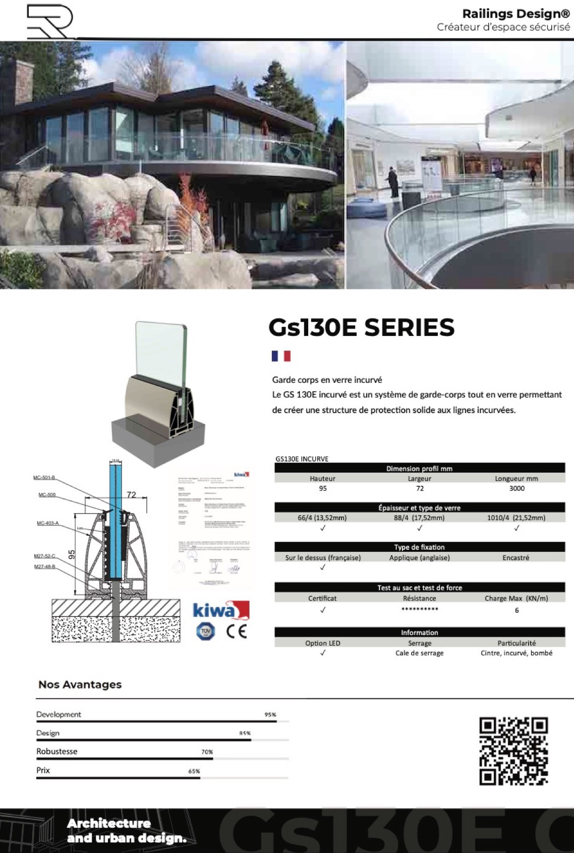 With the GS130E Incurvé, Railings Design® proves that it's possible to combine safety, elegance, originality and savings. Don't wait any longer, contact us today and discover how you can embellish your space with style and softness!