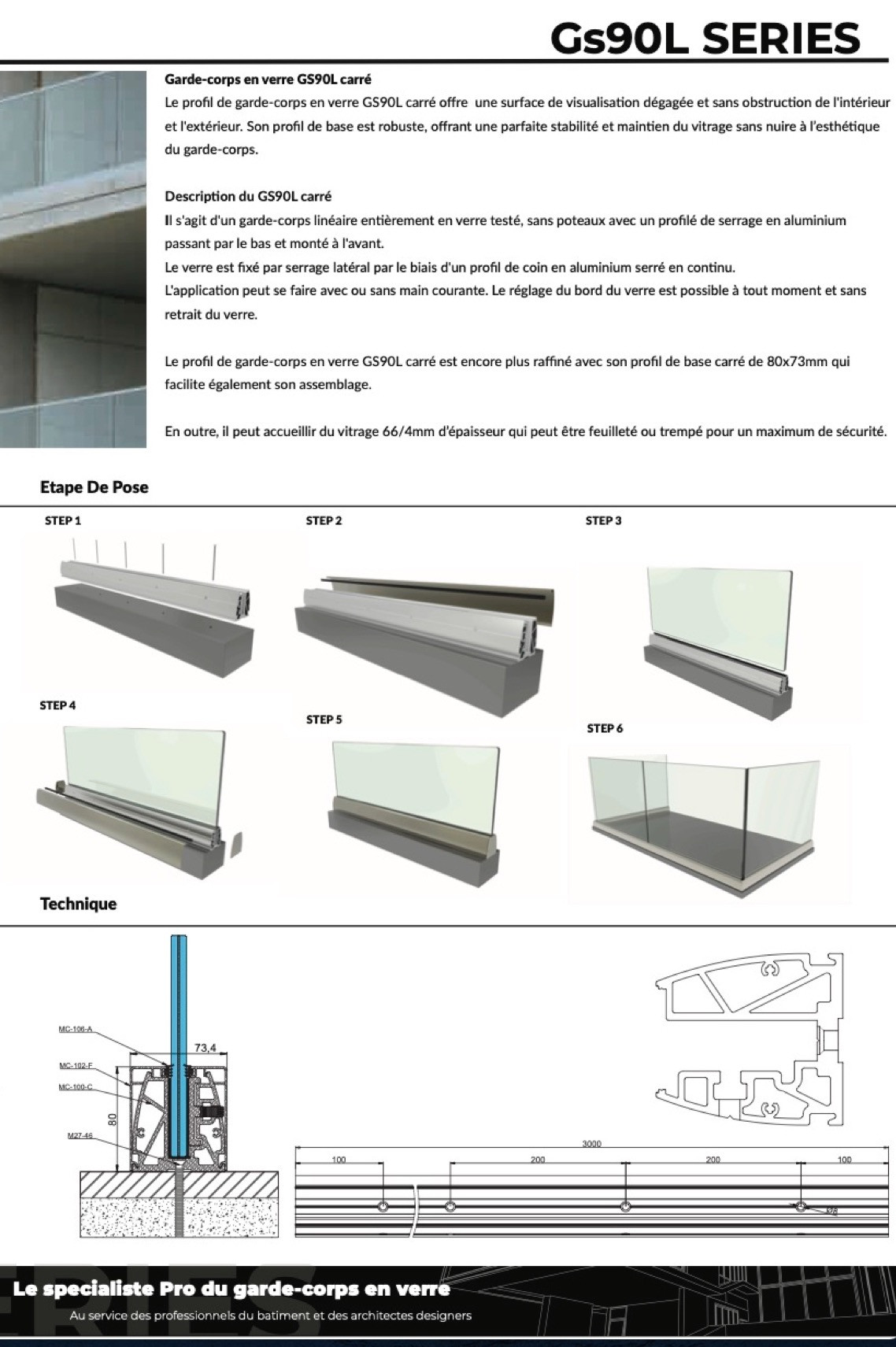 Imagine yourself on a panoramic terrace, admiring the horizon without any visual obstructions. The GS90 LONG turns this dream into reality. With its impressive 3-meter profile, this revolutionary glass railing is designed for spaces that think big. Gone are the days of unsightly interruptions, replaced by uninterrupted views and uncompromising safety.