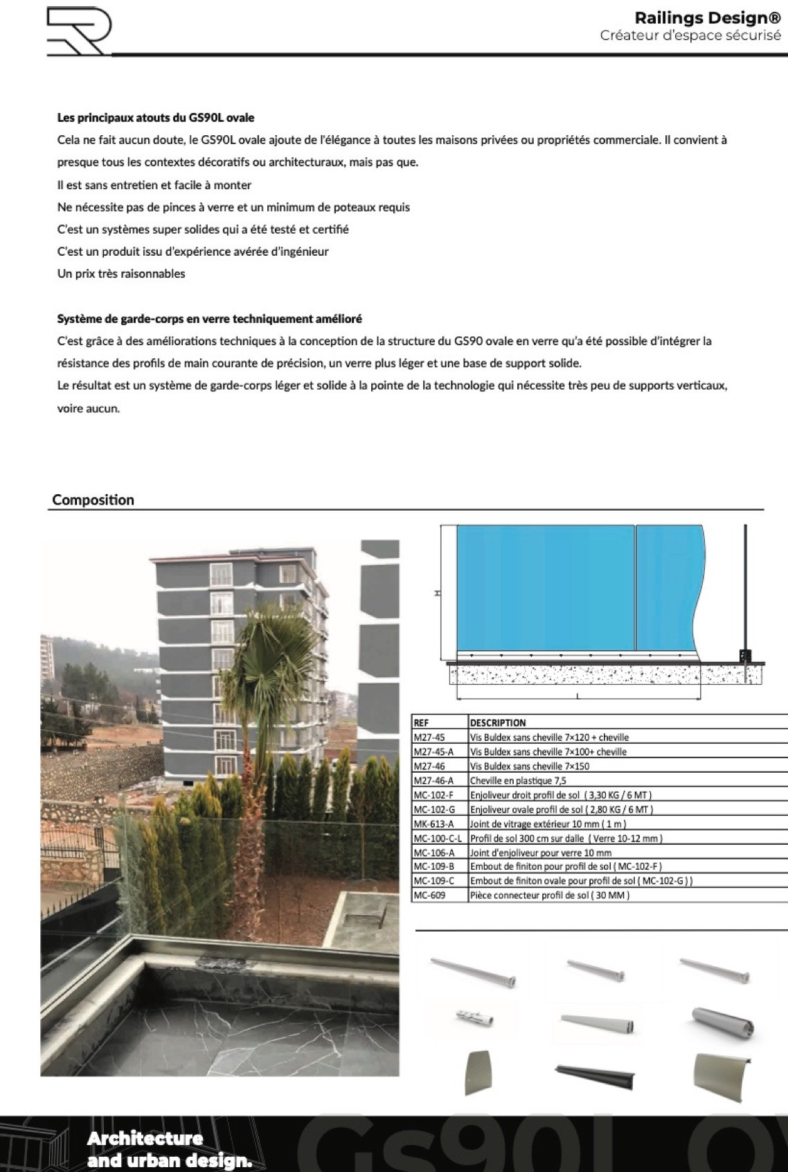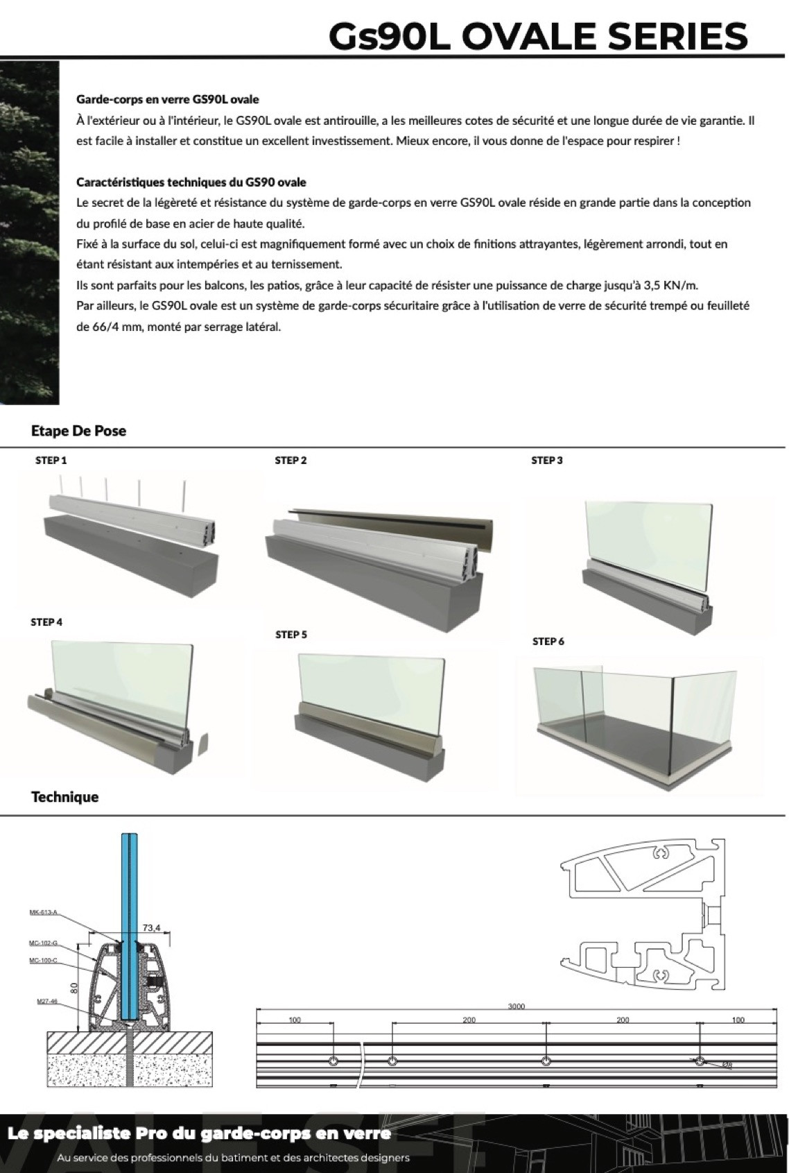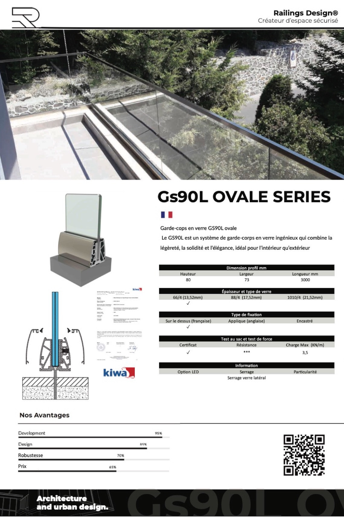 Tired of straight lines and sharp angles? Looking for a more welcoming, harmonious space? The GS90L Oval is the answer. This glass railing is distinguished by its rounded profile, which brings a touch of softness and elegance to your interior and exterior. Treat yourself to an unobstructed view without sacrificing safety, and let GS90L Ovale transform your space into a haven of peace.