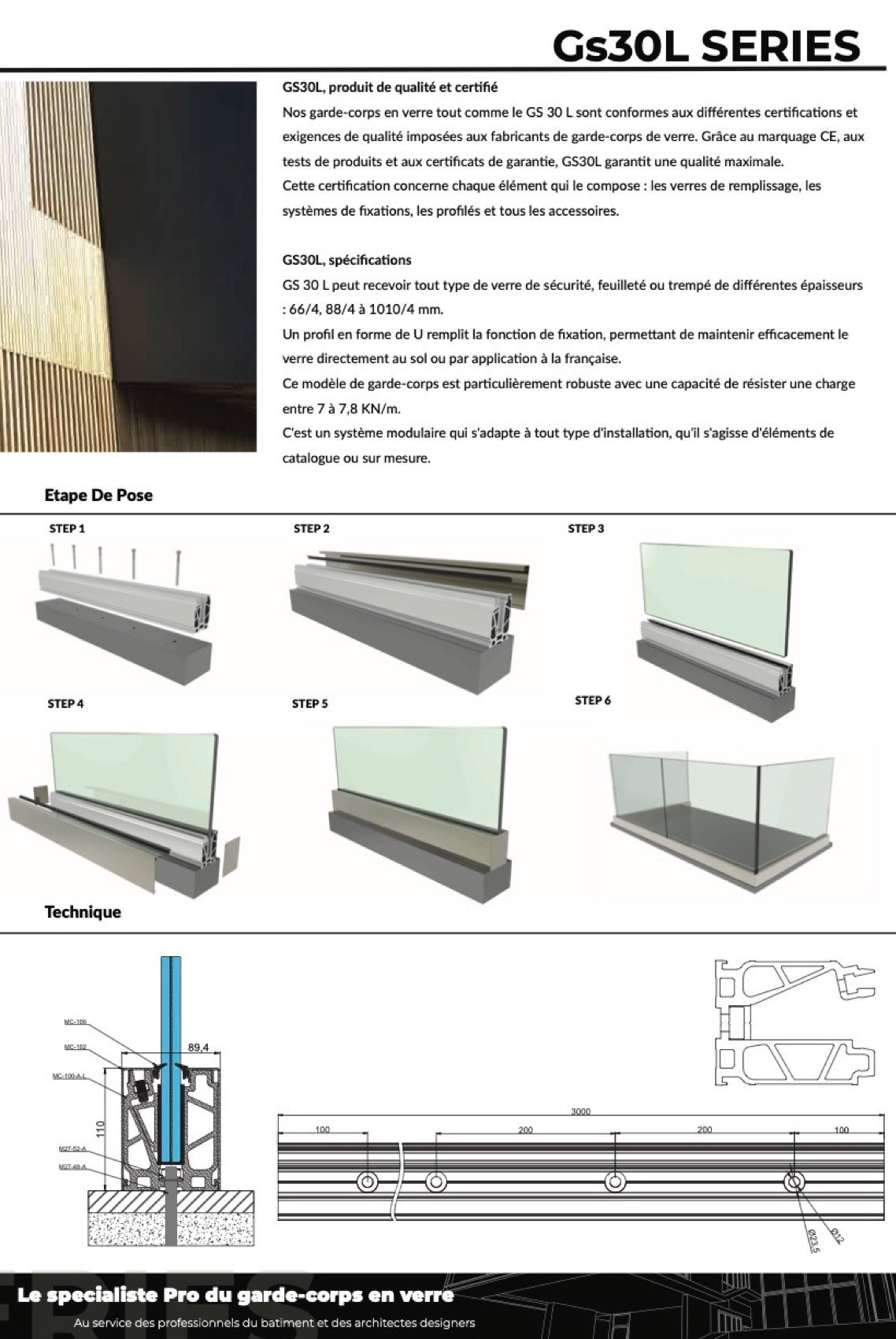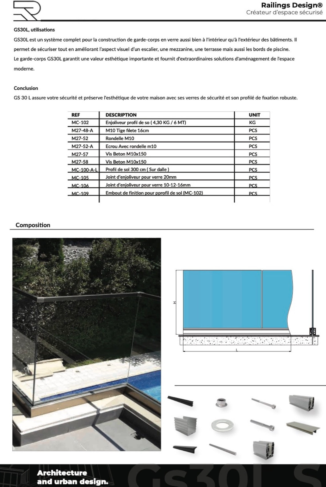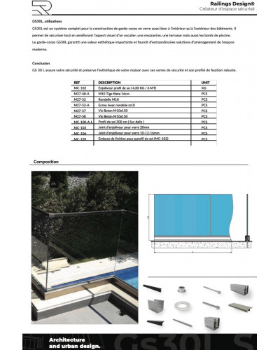 Ensure your family's safety and enhance your spaces with GS30L, a glass railing that combines avant-garde aesthetics with exceptional strength. Designed to meet the most demanding requirements, it's ideal for staircases, mezzanines, terraces and even pool surrounds.