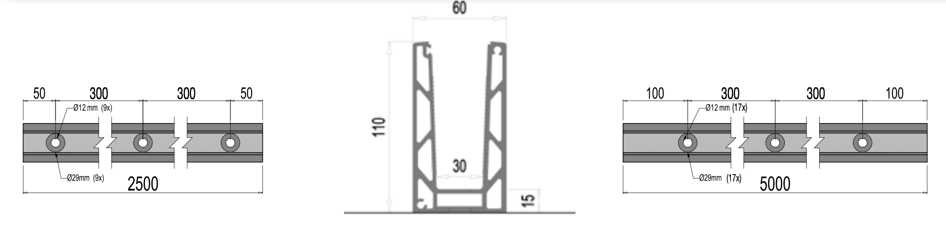 The performance of the E100 glass guardrail has been demonstrated by numerous tests complying with European safety standards. Displacement tests were carried out on the 1 m base profile under a concentrated horizontal load of 150 kg, well in excess of the regulatory 100kg.